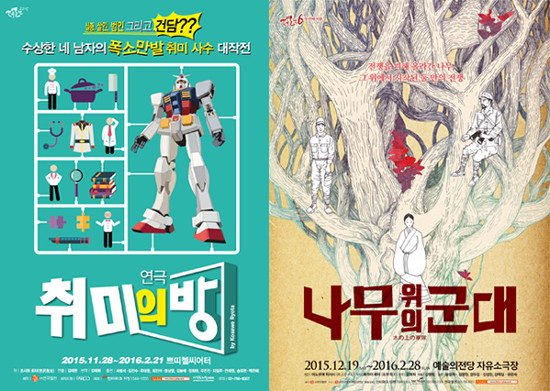 연극열전 시리즈 '취미의 방'과 '나무 위의 군대'가 2월 6일부터 10일까지 설 연휴 기간 가족들과 특별한 문화생활을 즐길 수 있는 다양한 이벤트를 준비했다.대학로 쁘띠첼씨어터에서 공연되는 '취미의 방'을 찾는 관객들은 현장에서 바로 경품을 추첨하고 수령하는 '추억의 즉석 뽑기 이벤트'에 참여할 수 있다. 공기청정기, 건담 프라모델, 공연·전시회 티켓 등의 경품이 증정된다.예술의전당 자유소극장에서 공연되는 '나무 위의 군대' 역시 번호표 추첨 방식의 '복(福)권 이벤트'를 통해 32종의 엽서와 사인 프로그램북, 공연 포스터와 관람권 등으로 구성된 경품 증정 이벤트를 진행한다. 극중 인물의 이름으로 제공되는 세뱃돈 형태의 경품도 포함돼 눈길을 끈다.이번 이벤트는 유료 구매자를 대상으로 연휴 기간 중 당일 응모를 통해 참여 가능하다. 두 작품 모두 공연티켓 1+1 지원사업 선정작으로 최대 66% 할인을 받을 수 있으며, 6일부터 10일까지 공연은 '설연휴할인'으로 누구나 50% 가격에 관람할 수 있다.한편, 작품성과 대중성을 인정받아 온 연극열전은 '나무 위의 군대'를 시작으로 오는 5월 선천성 장애를 가진 아들과 그 아버지를 그린 '킬 미 나우'를, 8월에는 원작의 극중극 모티프를 확장시킨 새롭고 젊은 '햄릿'을 충무아트홀 중극장 블랙에서 공연한다.또, 현대인들이라면 누구나 가지고 있을 다양한 형태의 강박증을 즐겁게 다룬 몰리에르 수상작 '톡톡'과 동명의 소설을 연극화한 '은교'로 시즌 프로그램을 이어갈 예정이다.[사진=연극열전]