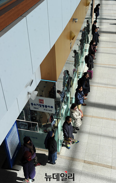 설 연휴을 하루 앞둔 5일 오후 서울역 역사안 대합실에 서울로 도착하는 가족을 기다리는 시민들이 늘어서 있다.