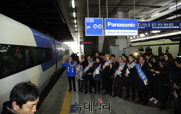 더불어민주당 김종인 비대위원장과 지도부가 설 연휴를 하루 앞둔 5일 오전 서울 용산역 (KTX호남선)을 찾아 귀성객들에 명절 인사를 하고 있다.