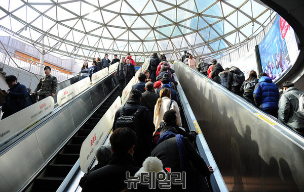 설 연휴을 하루 앞둔 5일 오후 지하철서울역에는 고향가는 열차를 타러 서울역사로 향하는시민들로 가득하다.