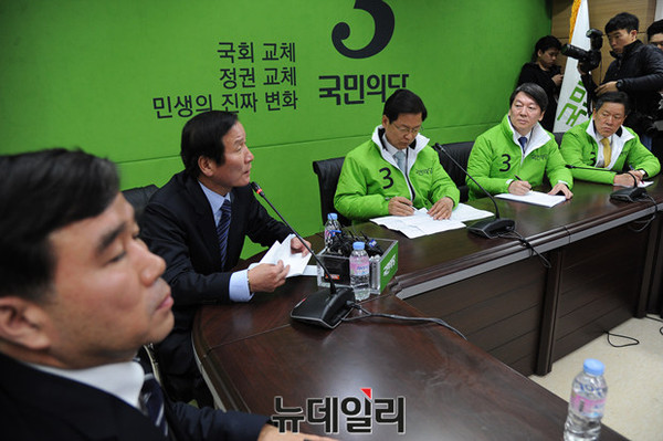 국민의당 안철수-천정배 공동대표 등이 12일 오전 서울 마포구 국민의당 당사에서 개성공단기업협회 회장과 임원들을 만나 개성공단 폐쇄 조치와 관련해 면담하고 있다.