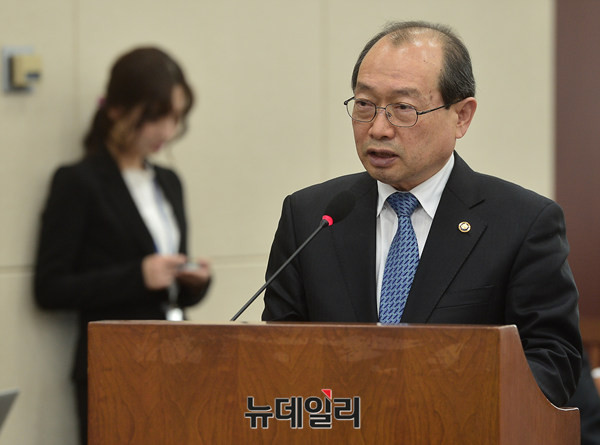 국방위 전체회의가 15일 오후 국회에서 열린 가운데 장명진 방위사업청장이 모두발언을 하고 있다.