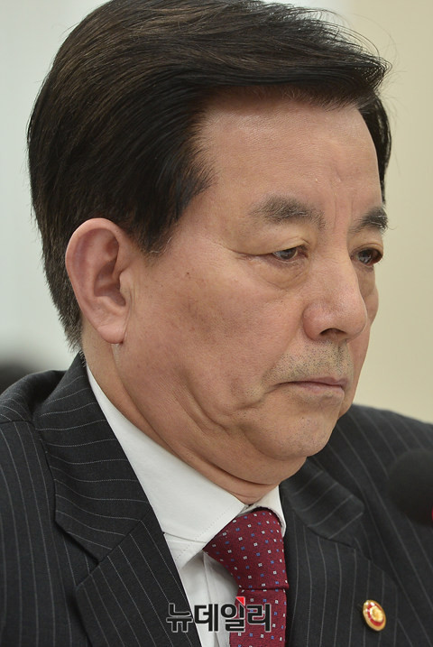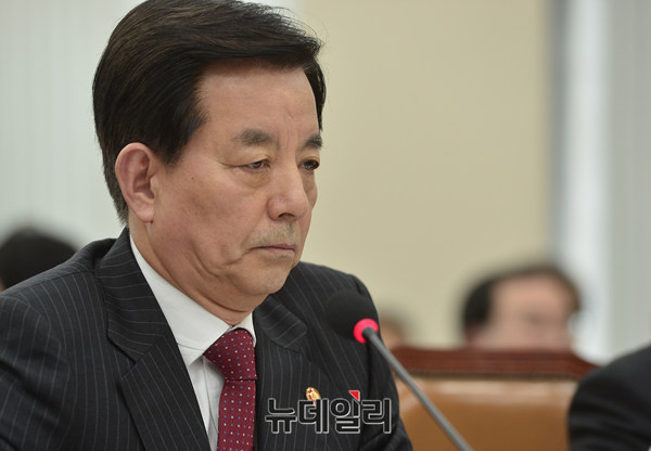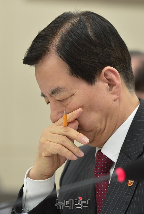 국방위 전체회의가 15일 오후 국회에서 열린 가운데 한민구 국방부 장관이 국방위원들의 질의에 앞서 생각에 잠겨있다.