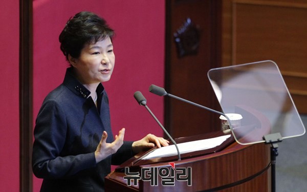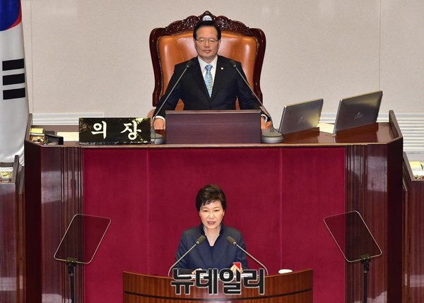 박근혜 대통령이 16일 오전 서울 여의도 국회 본회의장에서 특별연설을 하고 있다.