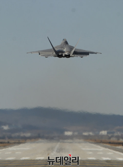 한미군은 17일 경기 평택 오산 공군기지에 F-22 랩터 스텔스 전투기 4대를 긴급전개했다. 이날 오전 12시에 도착한 F-22 4대중 2대는 오산에 주둔하면서 한국공군과 연합훈련을 실시할 예정이다.