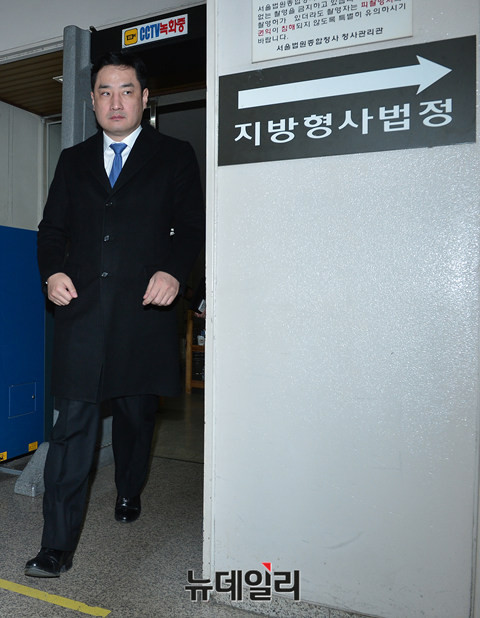 서울중앙지법 형사 합의 27부(재판장 심규홍 부장판사)가 17일 오후 서울중앙지법 311호 법정에서 박원순 서울시장 아들 박주신 병역비리 의혹이 사실이 아니라며, 양승오 박사 등 시민 7명에 대해 700~1,500만원의 벌금형을 선고했다. 선고 직후 강용석 변호사가 법정을 나서고 있다.