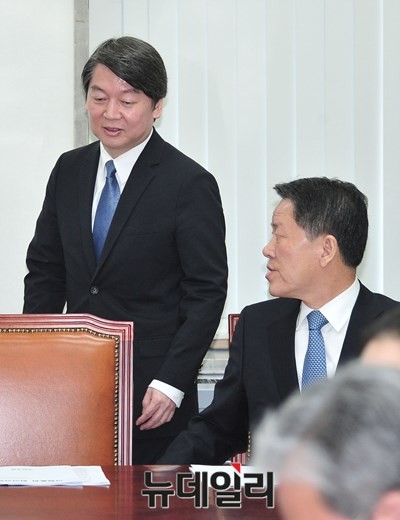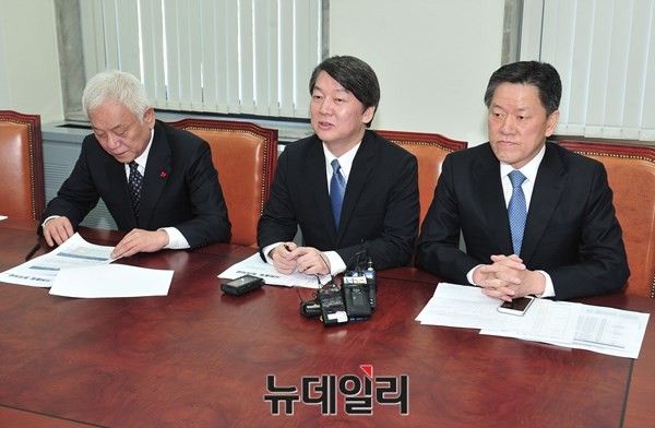 국민의당이 안철수 공동대표와 김한길 선대위원장, 주승용 원내대표가 7일 오전 서울 여의도 국회에서 의원총회를 갖고 있다.