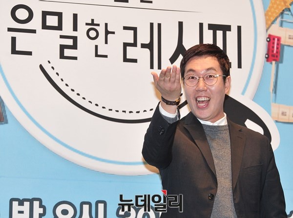 MBC에브리원 예능프로그램 [마담들의 은밀한 레시피] 제작발표회가 17일 오후 CGV IFC점에서 열린 가운데 개그맨 김영철이 포토월을 갖고 있다.