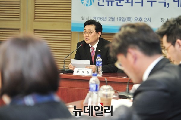 한국e스포츠협회 명예회장을 맡고 있는 더불어민주당 전병헌 전 최고위원이 18일 오후 서울 여의도 국회 의원회관에서 열린 e스포츠 발전을 위한 토론회에서 축사를 하고 있다.
