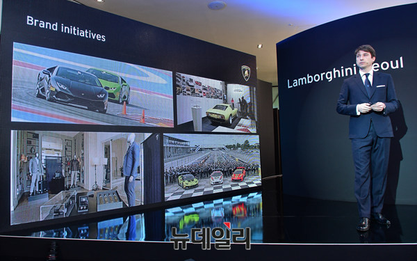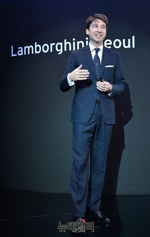 '안드레아 발디' 오토모빌리 람보르기니 아시아 태평양 재너럴매니저가 인사말을 하고 있다.