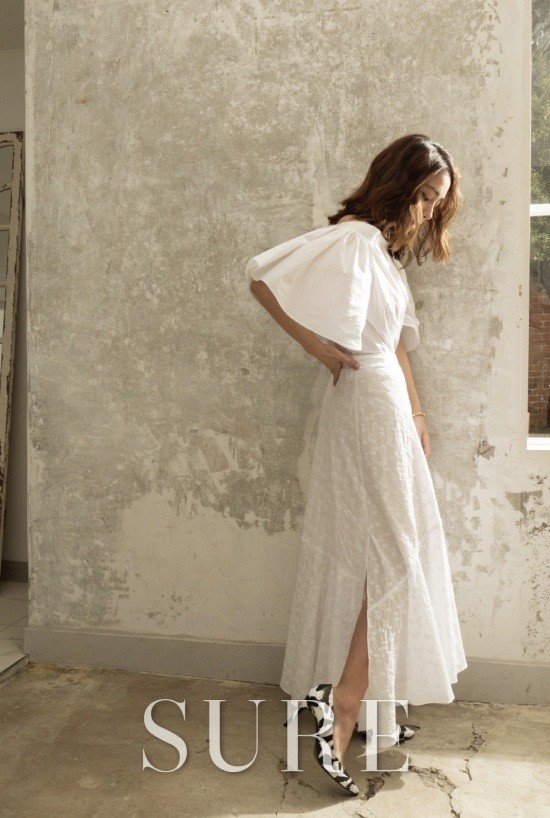 'Lady in White' 컨셉의 지컷(g-cut) 16SS 'WHITE 컬렉션'과 함께 한 이번 화보에서 이민정은 네추럴한 헤어 스타일링과, 화이트 컬러 오프 숄더 블라우스, 페플럼 롱 스커트 등으로 멋을 내며 고혹적인 분위기를 연출했다. -