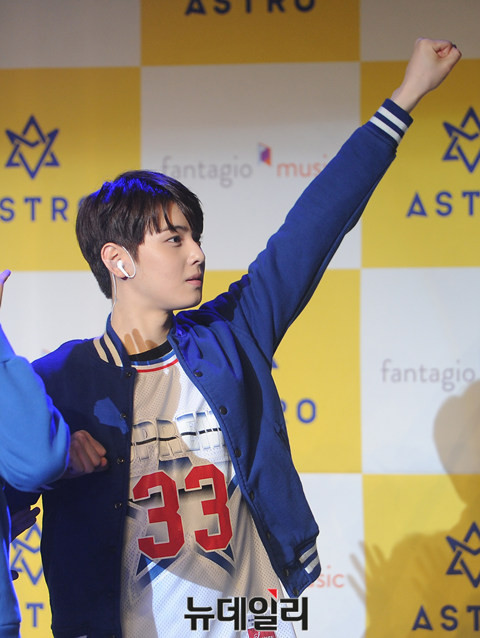 신인 보이그룹 아스트로(ASTRO, 차은우 문빈 MJ 진진 라키 윤산하)가 22일 오후 서울 마포구 롯데카드 아트센터에서 열린 데뷔 앨범 'Spring Up' 쇼케이스 무대에서 공연을 하고 있다.아스트로의 첫 번째 미니 앨범 타이틀 곡 '숨바꼭질'은 인기 작곡팀 이기용배가 작사 및 작곡한 곡으로, 재기 발랄한 가사와 그루브 넘치는 드럼라인이 돋보이는 곡이다.아스트로는 오는 24일 MBC뮤직 '쇼 챔피언'을 시작으로 본격적인 활동에 돌입한다.