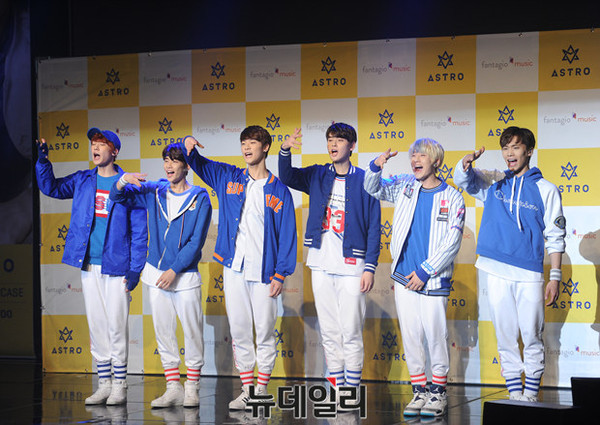 신인 보이그룹 아스트로(ASTRO, 차은우 문빈 MJ 진진 라키 윤산하)가 22일 오후 서울 마포구 롯데카드 아트센터에서 열린 데뷔 앨범 'Spring Up' 쇼케이스 무대에서 공연을 하고 있다.아스트로의 첫 번째 미니 앨범 타이틀 곡 '숨바꼭질'은 인기 작곡팀 이기용배가 작사 및 작곡한 곡으로, 재기 발랄한 가사와 그루브 넘치는 드럼라인이 돋보이는 곡이다.아스트로는 오는 24일 MBC뮤직 '쇼 챔피언'을 시작으로 본격적인 활동에 돌입한다.