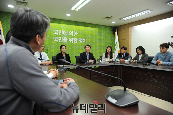 안철수 국민의당 상임공동대표가 4일 오전 서울 마포구 국민의당 당사에서 국민의당 젊은 행동그룹 '고(GO)포럼' 과 면담을 하고 있다.