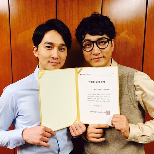 [관객이벤트로 모아진 헌혈증 122매를 기부한 강필석 이석준, 사진=오디컴퍼니]