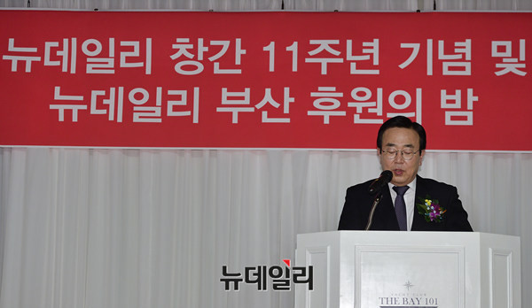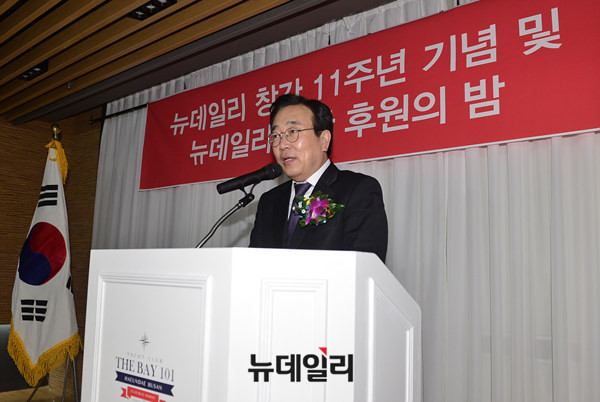 '뉴데일리미디어그룹 11주년 및 뉴데일리 부산 후원의 밤' 행사가 26일 오후 부산 해운대 더베이101에서 개최된 가운데 서병수 부산시장이 축사를 하고 있다.