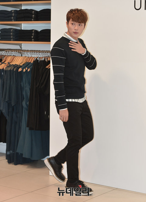 이날 기념행사에 비스트 멤버 윤두준이 입장해 포토타임을 갖고 있다.