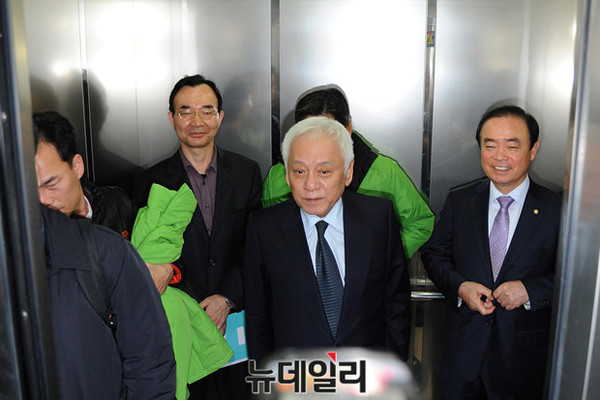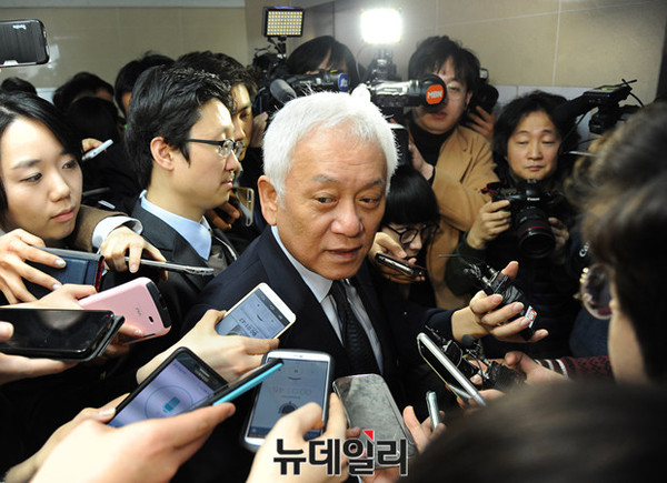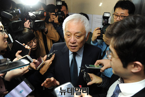 국민의당 김한길 선대위원장이 4일 오전 서울 마포구 당사에서 선대대책위원회의를 마친 뒤 당사를 나서며 취재진의 질문을 받고 있다.