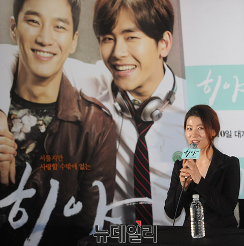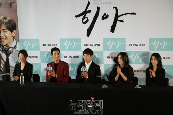 영화 '히야' 언론시사회가 4일 오후 서울 성동구 왕십리 CGV에서 열렸다. 이날 시사회에는 이지영 감독과 배우 안보연, 이진호(인피니트 호야), 강민아, 강성미가 참석해 포토타임과 간담회를 진행했다.