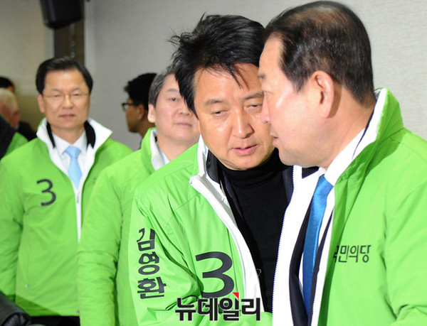 국민의당 안철수, 천정배 공동대표와 김영환 인재영입위원장, 박주선 최고위원 등이 7일 오전 서울 마포 당사에서 열린 선거대책위원회에 입장하고 있다.