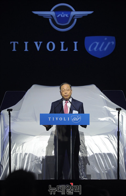 쌍용자동차 '티볼리 에어(TIVOLI Air)' 신차발표회가 8일 오전 서울 서초구 반포 세빛섬 가빛 FIC홀에서 열렸다. 이날 쌍용자동차 최종식 대표이사가 축사를 하고 있다.