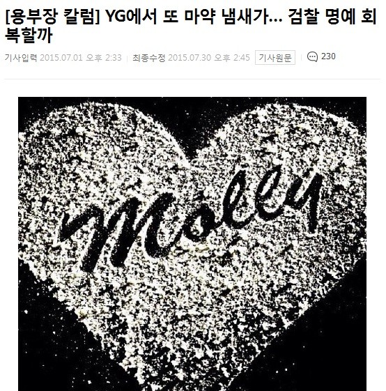 검찰은 "K기자가 지난해 7월 1일 'YG에서 또 마약 냄새가… 검찰 명예 회복할까'라는 글을 게재하며 YG엔터테인먼트가 연예인들에게 마약을 제공하는 것처럼 묘사, YG의 명예를 훼손했다는 취지로 피소됐으나, 해당 기사에 허위사실이 적시됐다고 단정하기 어렵고, 비방의 목적과 위법성을 인정하기도 어렵다"고 밝혔다.피의자(K기자)는 "YG를 '약국'으로 표현한 것은 이미 다른 기사들에서도 사용된 표현이고, 본건 기사의 취지는 고소인 회사 관계인에 대한 마약 사건을 철저하게 수사해 달라는 것이라는 취지였을 뿐"이라고 주장하고 있습니다.