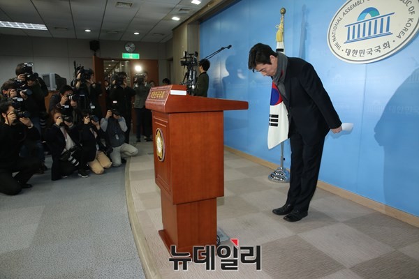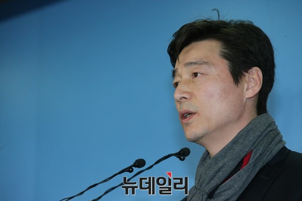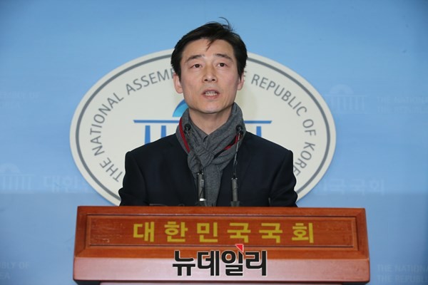 송호창 더불어민주당 의원이 8일 오전 서울 여의도 국회 정론관에서 기자회견을 갖고 총선 불출마 선언을 하고 있다.