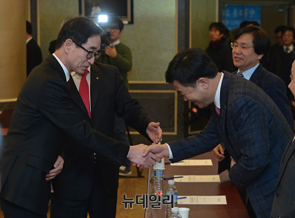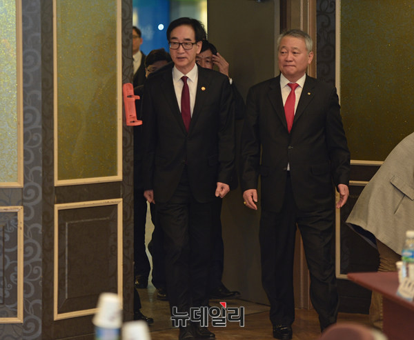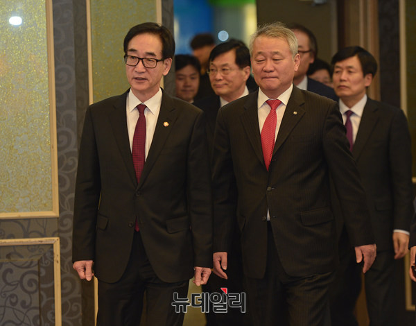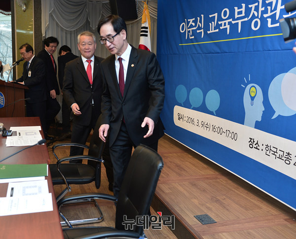 한국교원단체총연합회(이하 한국교총)가 9일 오후 서울 서초구 한국교총 단재홀에서 '이준식 교육부장관과 현장교원과의 대화'를 개최했다. 이준식 장관과 안양옥 회장이 동시 입장하고 있다.