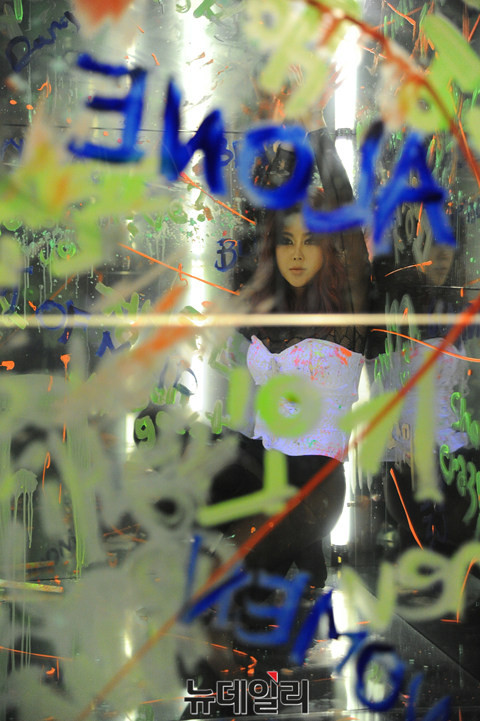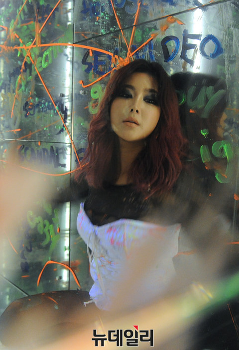 가수 솔비(권지안)가 11일 오후 서울 영등포구 안국약품 갤러리AG에서 새 싱글앨범 '블랙스완'의 발매 기념 쇼케이스를 열고 퍼포먼스를 선보이고 있다.