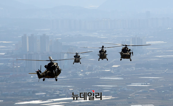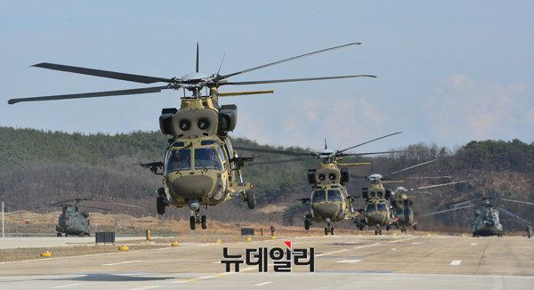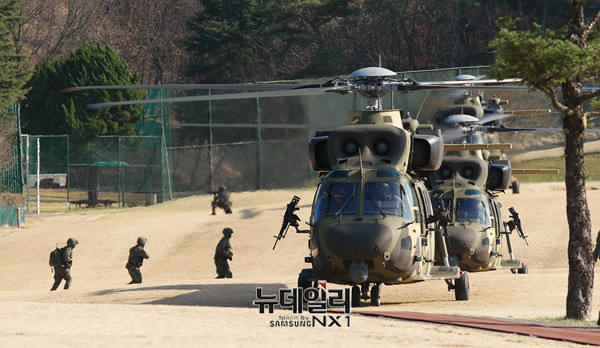 이번 훈련에는 최근 전력화 된 국산 수리온헬기(KUH-1)가 처음 작전에 투입돼 유사시 신속한 작전지역 전개능력을 확인하는 계기가 됐다. (경북 영천=뉴데일리 정상윤 기자)