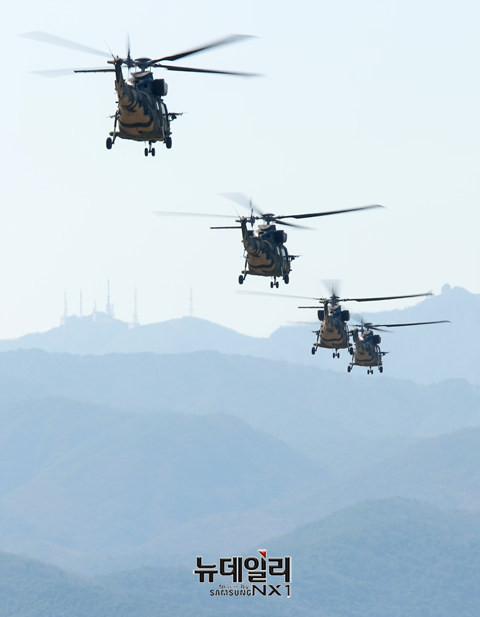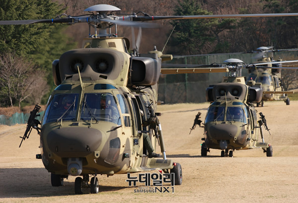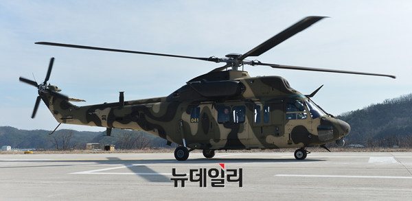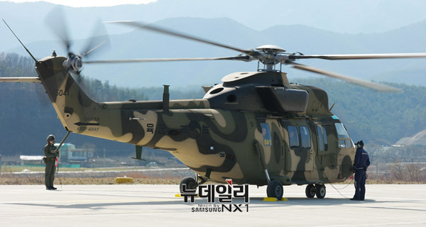 엔진은 가스터빈 쌍발·1855마력X2이다. 메인로터 4엽에 최대 순항속도는 148knot(274km/h), 인양 능력은 2.7톤이다. 디지털 자동 조종시스템을 답재한 수리온의 탑승 인원은 2명(조종사)+9(완전군장)+2명(승무원)이다. (경북 영천=뉴데일리 정상윤 기자)