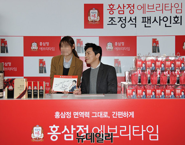 배우 조정석이 14일 오전 서울 중구 소공동 롯데백화점 본점에서 열린 KGC인삼공사 정관장 에브리타임 팬사인회 행사에 참석해 팬들과의 만남을 갖고 즐거운 시간을 보내고 있다.
