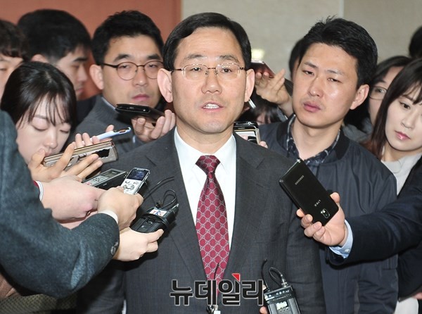 [포토] 기자들의 질문에 답하는 주호영 의원