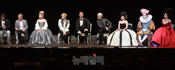 프랑스 오리지널 뮤지컬 '아마데우스' 프레스콜이 15일 오후 서울 세종문화회관 대극장에서 진행됐다. 기자간담회에서 마스터엔터테인먼트 김용관(오른쪽) 대표가 소감을 밝히고 있다.