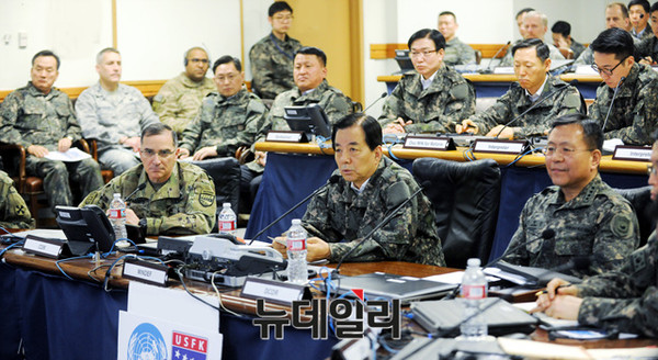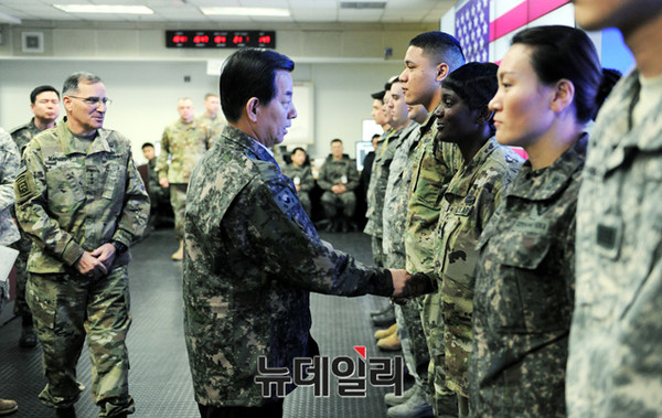 한민구 국방부장관은 16일 키리졸브(KR)연습하는 한미연합군사령부 훈련현장 'CP 탱고'를 방문해 연습에 전념하고 있는 한미 장병들을 격려하고 노고를 치하했다.