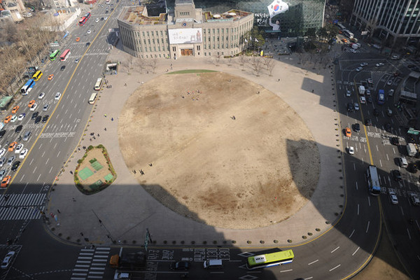 잔디조성으로 3월 한달간 모든 집회가 금지된 서울광장에 17일 오전 시민들의 발길이 한산하다.
