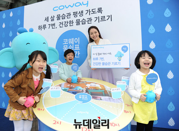 코웨이가 17일 오전 서울 광화문 청계광장에서 물의 날을 기념해 물의 소중함과 건강한 물 마시기 습관의 중요성을 알리는 '물쉼표 캠페인'을 진행하고 있다.