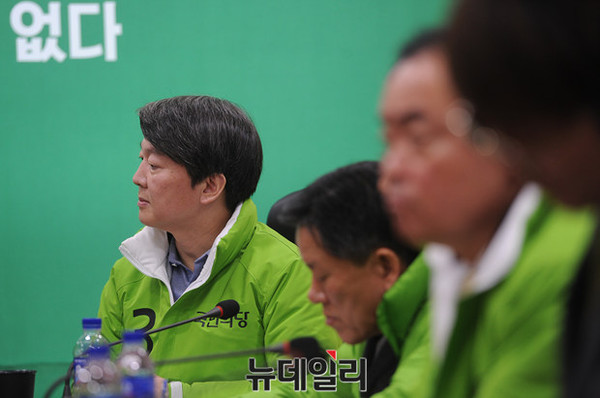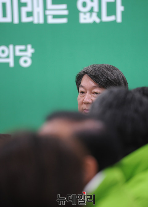 국민의당 안철수 공동대표가 18일 오전 서울 여의도 국회 의원회관에서 열린 최고위원회의에 참석해 천정배 공동대표의 모두발언을 듣고 있다.