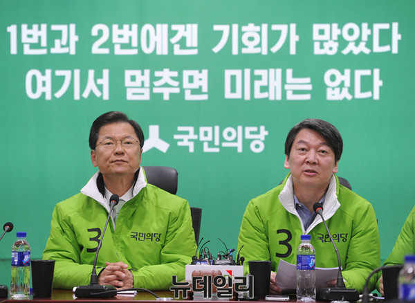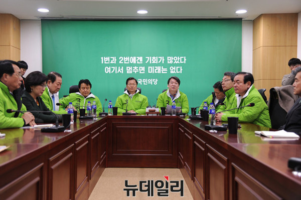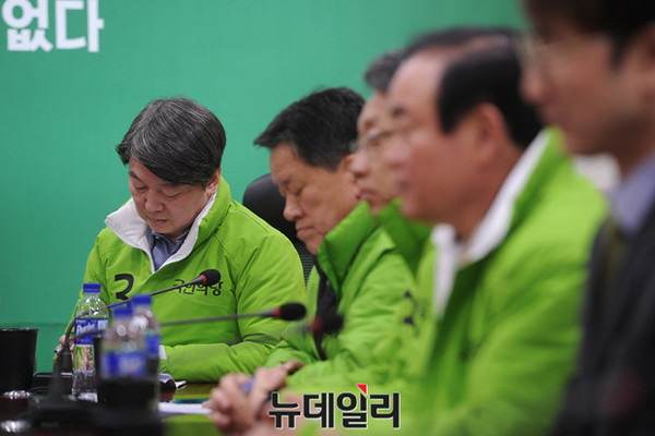 국민의당이 18일 의원회관에서 안철수·천정배 공동대표가 참석한 가운데 최고위원회의를 열고 있다.