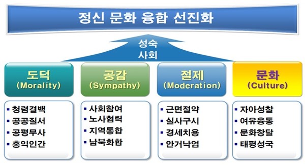 미래의 한국의 선진화 방향은 함께 잘 사는 성숙한 사회로 하고 이를 위하여 정신 측면에서