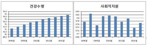 이러한 분석의 결과는 또 다른 보고서에서도 유사하게 지적된다. 세계경제포럼(WEF)이 세계 112개국의 경제 상황을 ‘포괄적(inclusive)’인 관점에서 비교 분석한 ‘포괄적 성장과 개발 보고서 2015’을 보면,‘국가경제의 핵심 실적 지표(NKPI)’로 성장 및 경쟁력, 소득 형평성, 세대간 형평성 등 세가지로 나누고 각국의 분야별 성적을 최상위(20%)에서 최하위에 이르까지 5개 등급으로 나눴다. 한국은 1인당 국민소득 1만7000달러 이상의 최고소득 30위 그룹(이른바 산업선진국)에 속했다. 이 비교에서 한국은 ‘성장 및 경쟁력’을 구성하는 하위 지표인 ‘10년간 연평균 1인당 GDP 성장률’과 ‘10년간 노동생산성 신장률’은 선진국 그룹에서도 1등급에 속했다. 그러나 제도와 정책 등이 포함된 국제경쟁력(GCR) 하위지표에선 중하위권(4등급)으로 처졌다.‘소득형평성’을 측정하는 하위 지표 가운데 빈곤율(중위소득의 절반 이하 소득자 비율)은 최하위인 5등급, ‘소득 중 노동소득의 비율’은 4등급이었다.