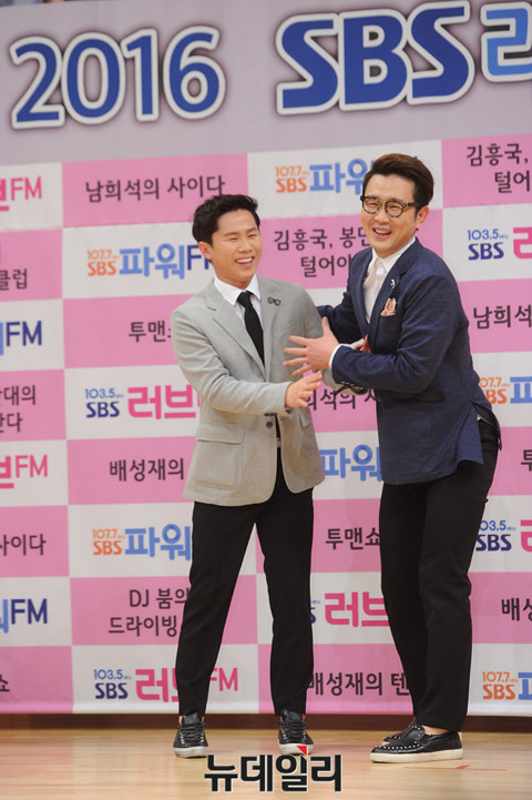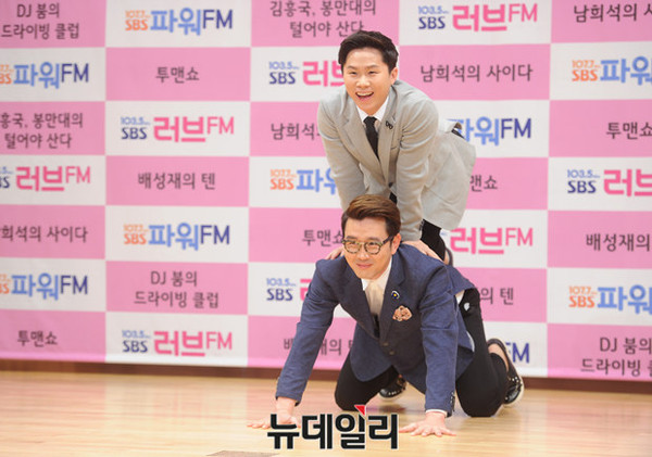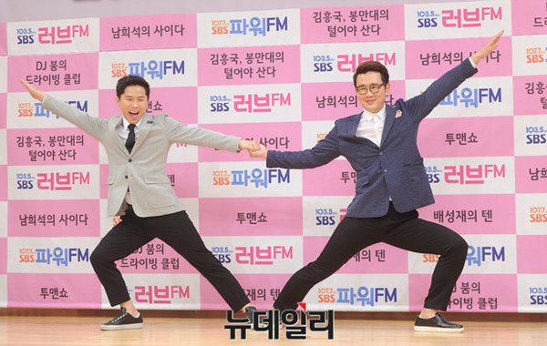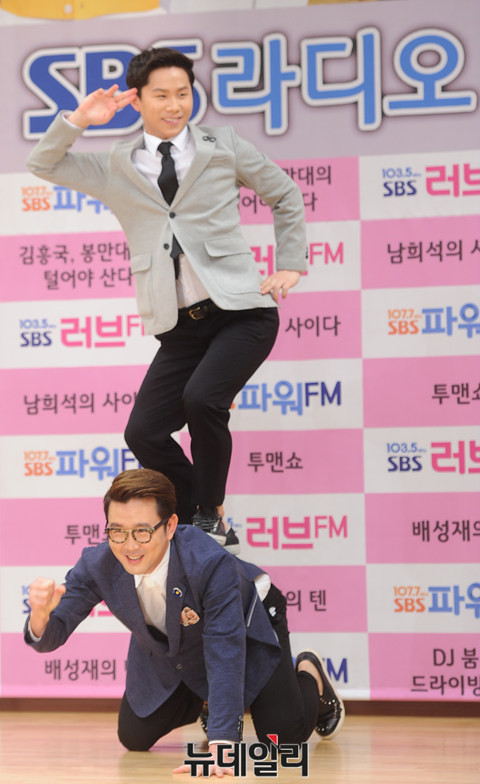 개그맨 양세형-윤형빈이 21일 서울 SBS 목동 사옥에서 열린 SBS 라디오 봄 개편 기자간담회에 참석해 포즈를 취하고 있다.