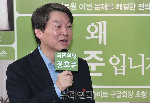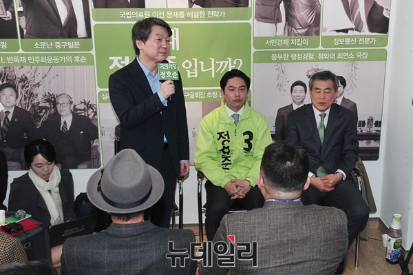 안철수 국민의당 공동대표가 21일 오후 서울 중구 신당동 정호준 후보 선거사무소 개소식에 참석해 축사를 하고 있다.