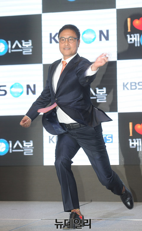 KBS N SPORTS가 2016 KBO리그 기자 간담회를 21일 오전 서울 여의도 글래드호텔에서 개최했다.송진우 해설위원이 참석해 포토타임을 갖고 있다.