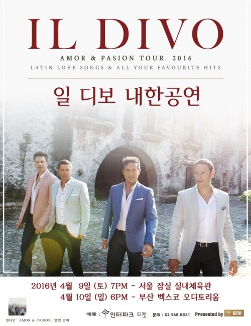 '2016 Amor & Pasion 월드투어' 중인 '일 디보'는 멕시코를 시작으로 남미, 아시아, 유럽, 미주 등 29개국에서 100회 이상의 공연을 펼친다. 한국에서는 4월 9일 서울 잠실 실내체육관과 10일 부산 벡스코 오디토리움 무대에서 국내 팬들과 만난다.