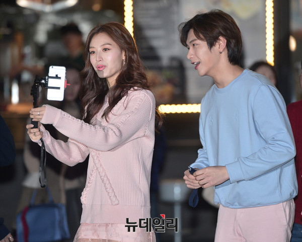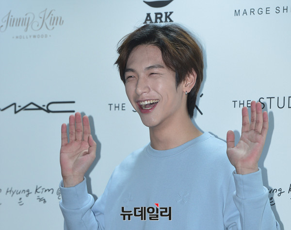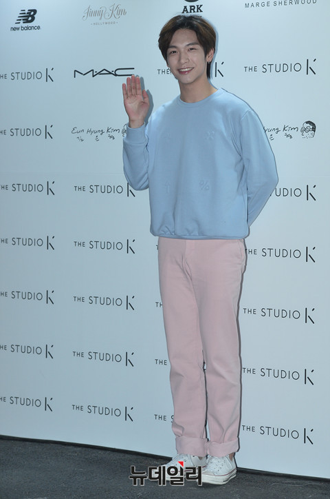 런웨이에 앞서 진행된 포토월 행사에 레인보우 재경과 엔플라잉 재현이 포토타임을 갖고 있다.