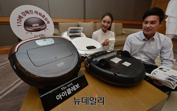 로봇 전문기업 유진로봇이 23일 오전 서울 서초구 JW 매리어트호텔서울에서 신제품 로봇청소기 '아이클레보 오메가' 출시기념 사진행사를 갖고, 국내 판매에 돌입했다.