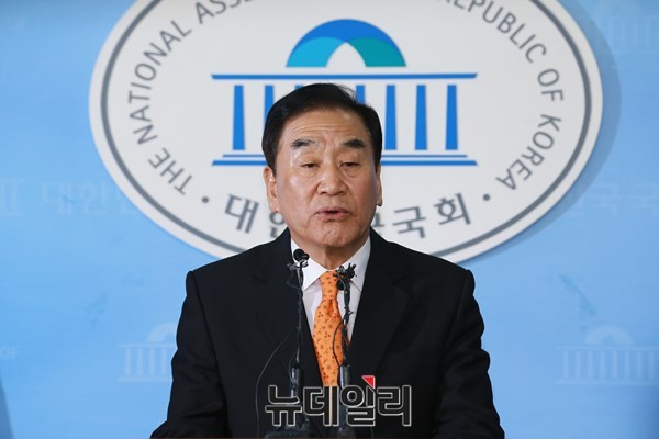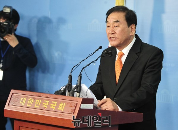 4·13 총선 공천에서 배제된 서울 은평을 5선 새누리당 이재오 의원이 24일 오후 서울 여의도 국회 정론관에서 탈당 및 무소속 출마 기자회견을 갖고 있다.