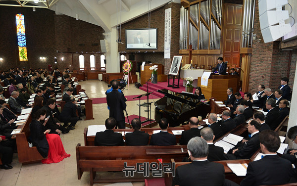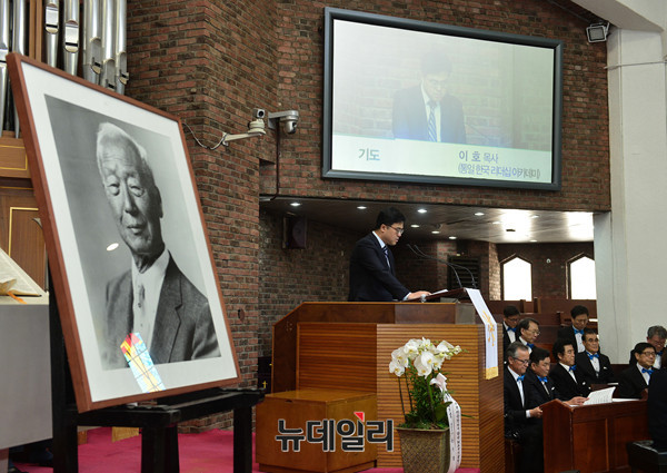 건국대통령이승만박사기념사업회가 26일 오후 서울 중구 제일정동교회에서 '건국대통령 이승만박사 탄신 141주년 기념식'을 개최했다. 기념식에 참석한 통일한국리더십아카데미 이호 목사가 기도를 하고 있다.