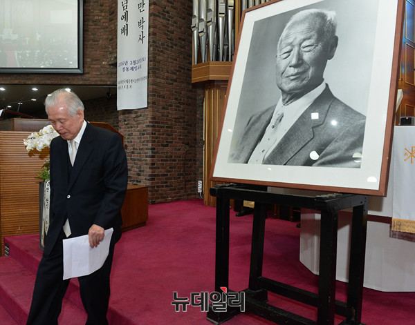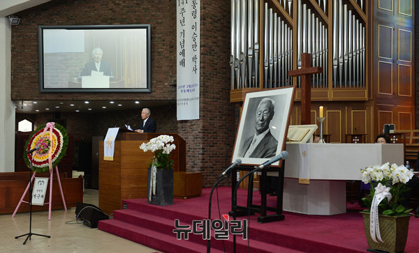 건국대통령이승만박사기념사업회가 26일 오후 서울 중구 제일정동교회에서 '건국대통령 이승만박사 탄신 141주년 기념식'을 개최했다. 이 전 대통령의 양자인 이인수 박사와 부인 조혜자 여사가 행사에 참석했다.